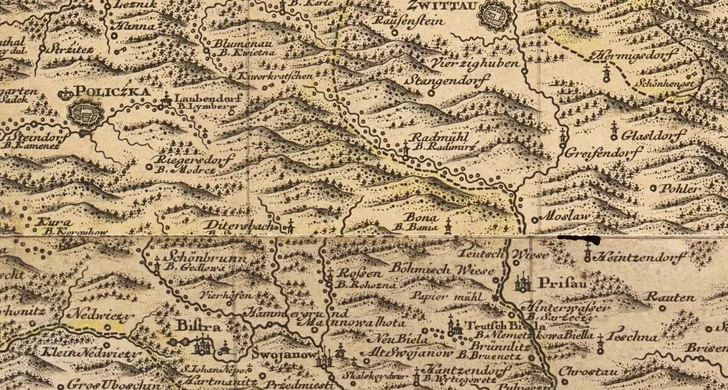 Ganz im Osten Böhmens, direkt an der mährischen Grenze, wachte seit der Mitte des 13. Jahrhunderts die Grenzfeste Fürstenberg, die heute den Namen Svojanov trägt, über ein großes, fast gänzlich bewaldetes Gebiet, das unter der direkten Herrschaft des böhmischen Königs Přemysl Ottokar II. stand. Später mehrfach geteilt, entstand auf diesem Gebiet eine böhmische Standesherrschaft, die nach ihrem Herrschaftsort den Namen Bistrau (Bystré u Poličky) trug.