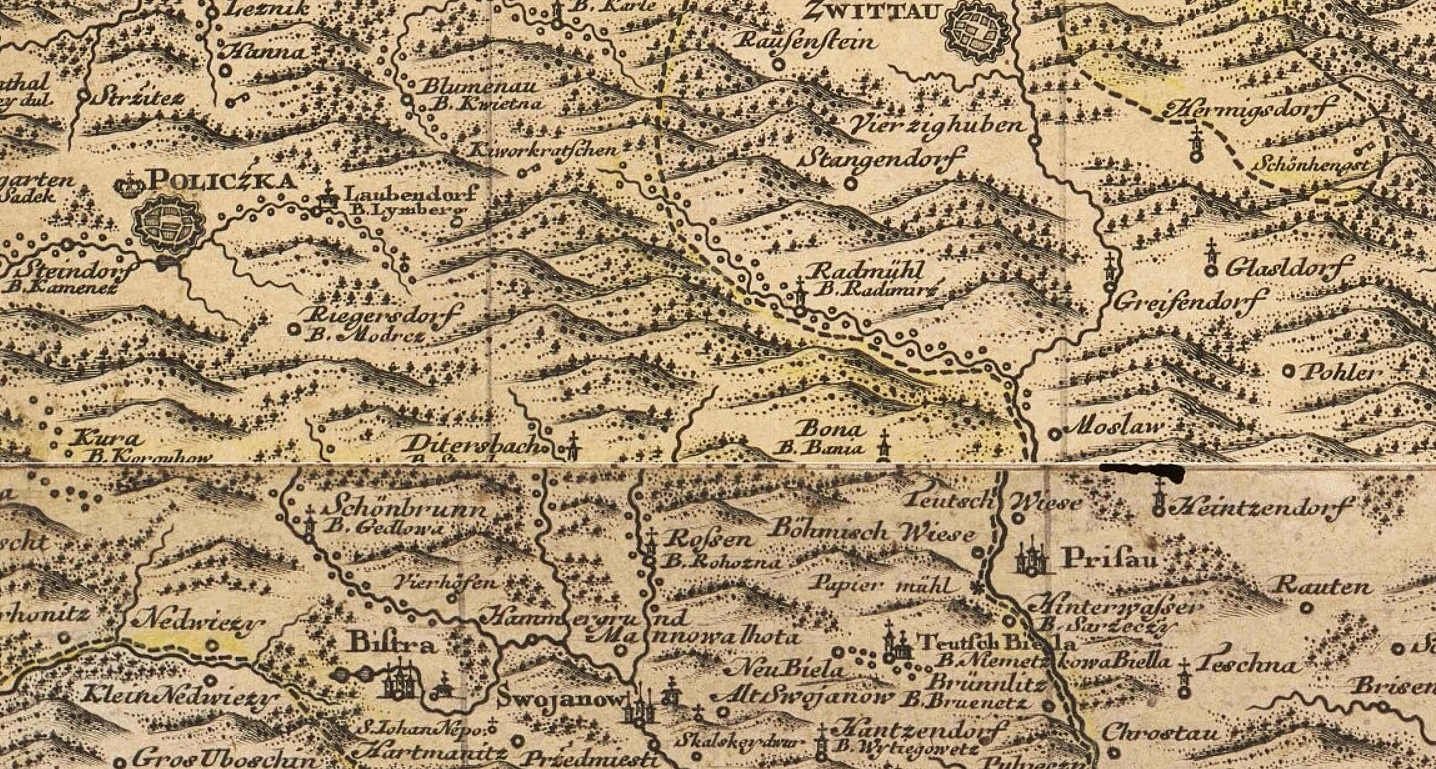 Alle Träger des Namens Bidmon haben ihren familiären Ursprung in diesem Gebiet, der Name kommt jedoch fast ausschließlich in den Dörfern Schönbrunn (Jedlová u Poličky) und Laubendorf (Pomezí) vor.