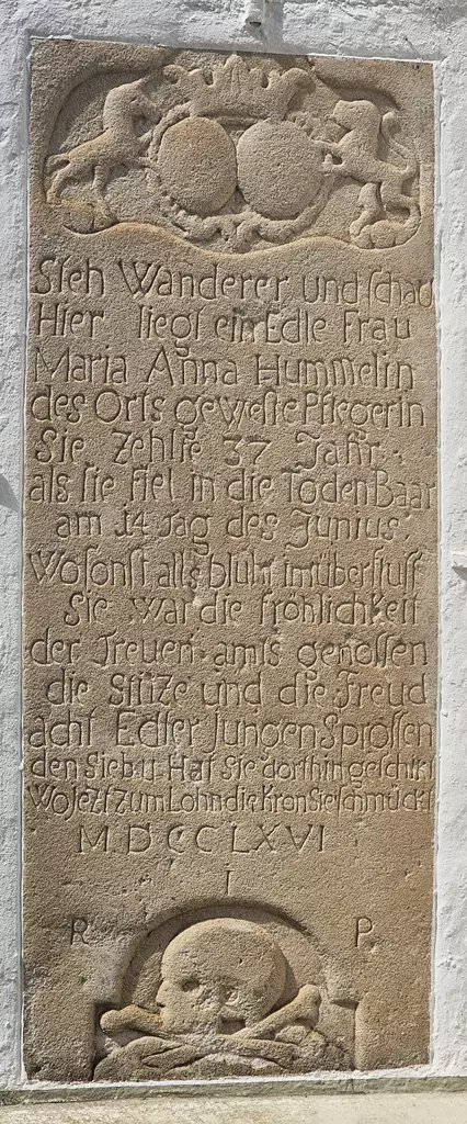 Die Kirche ist dreiseits umgeben von einem ummauerten Friedhof, der bis heute in Benutzung ist.