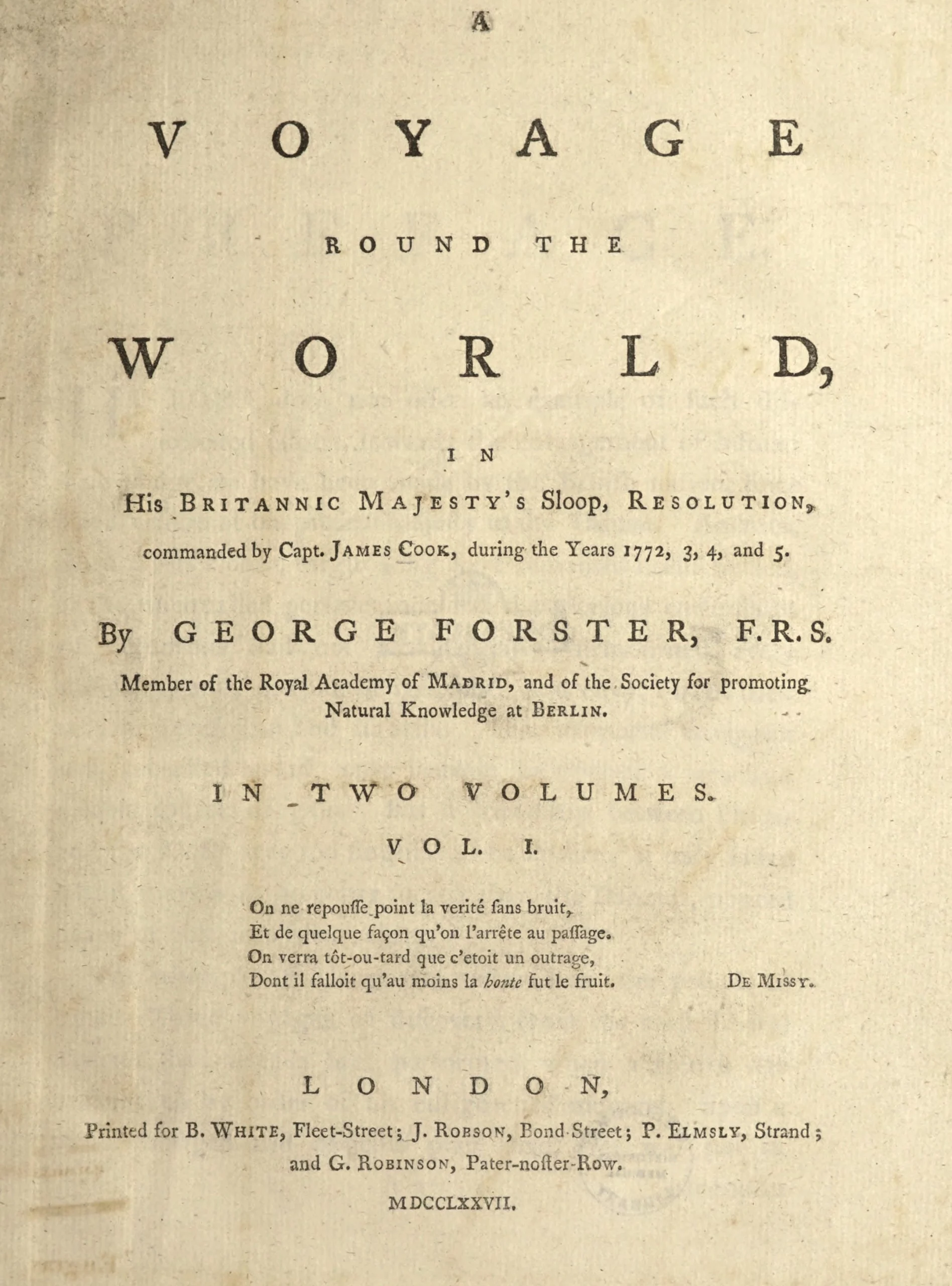 So erging es auch der jungen Therese Heyne, die viel Gebrauch von den Bildungsmöglichkeiten ihrer Familie machte und dadurch breit gestreute Kenntnisse auf zahlreichen Gebieten erworben hatte. Als ihre Mutter 1776 früh verstarb und sich der Vater schnell wieder verheiratete, musste sie im Pensionat des stiefmütterlichen Großvaters die Grundausbildung für ihr vorbestimmtes Leben als Ehefrau und Mutter absolvieren. Bald fand sich auch ein geeigneter Heiratsaspirant im Hause Heyne ein, ein weltberühmter noch dazu. Es war der 1754 geborene Georg Forster, der als Assistent seines Vaters, des Naturforschers Johann Reinhold Forsters, von 1772 bis 1775 James Cook auf seiner zweiten Reise in die Südsee begleiten durfte. Da sich Johann Forster zuvor vertraglich verpflichten musste keine eigenen Ergebnisse der Reise unter seinem Namen zu veröffentlichen, tat er dies unter dem Namen seines Sohnes Georg, der beim Vertragsschluss vergessen worden war und der dadurch innerhalb kürzester Zeit zu einem der bekanntesten Weltreisenden und Naturforscher dieser Zeit wurde.